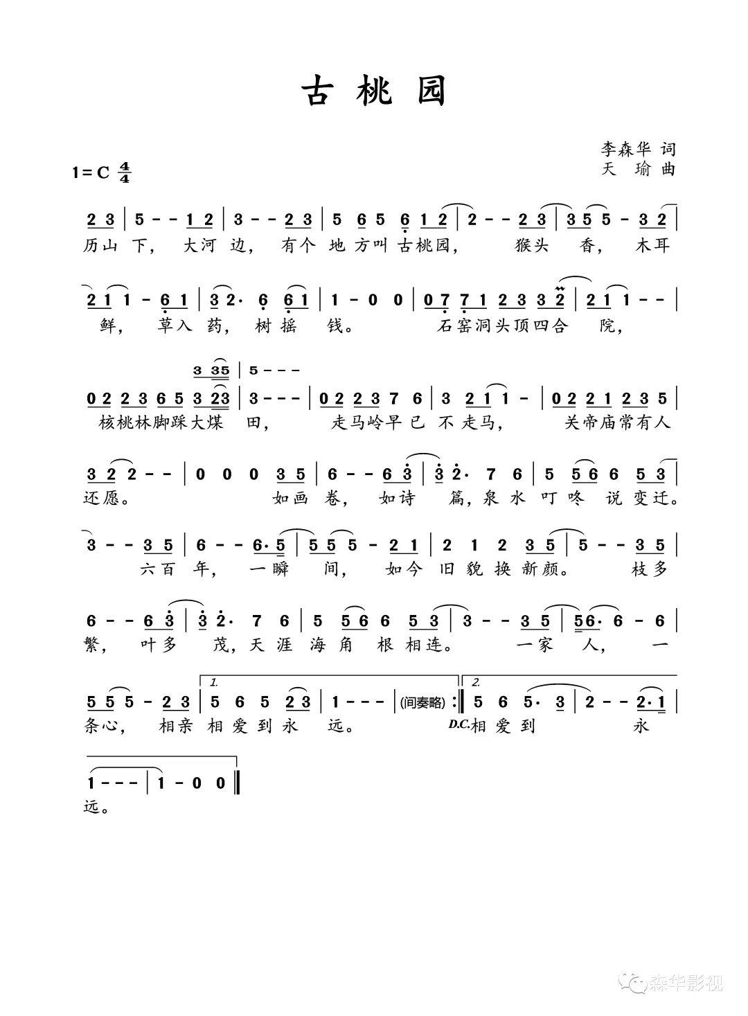 为我的家乡古桃园写一首歌曲,并将其拍成MV是我一直以来的心愿。当我决定要做这件事时,我向著名音乐人李咏海老师请教,他给了我很大的帮助和鼓励,历经三个多月努力,这首《古桃园》歌曲终于完成。