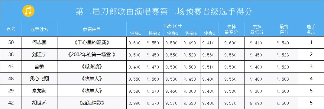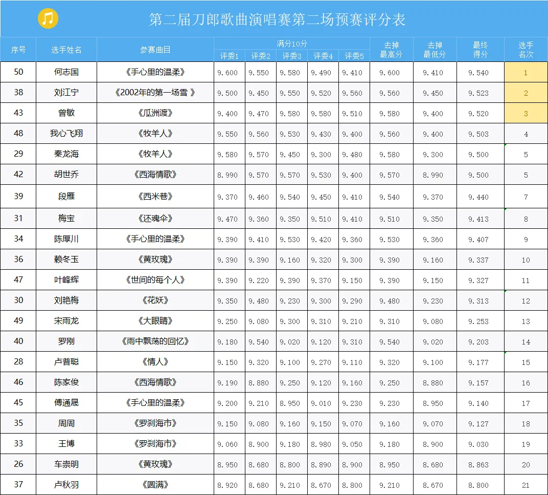 21组参赛选手成绩出炉