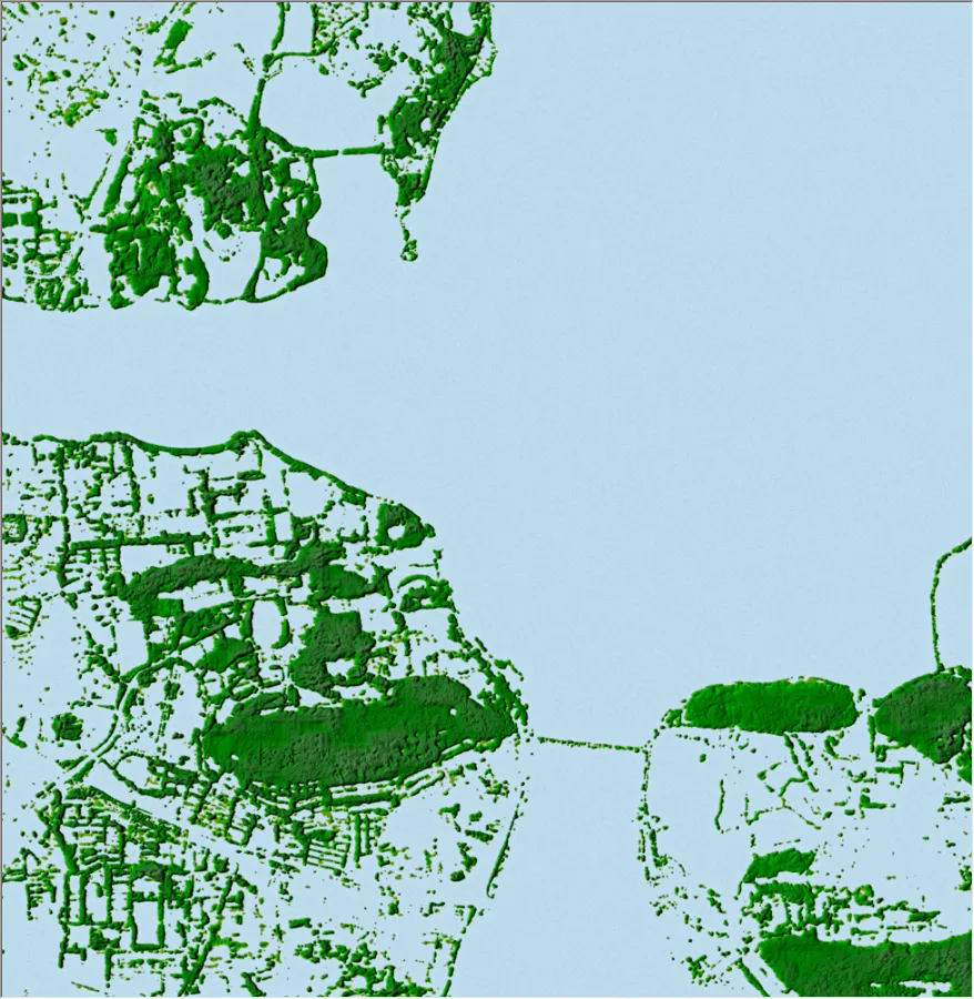 冠层高度数据可以采用DSM渲染的办法进行渲染,得到有立体效果的渲染图,方便进行可视化分析。