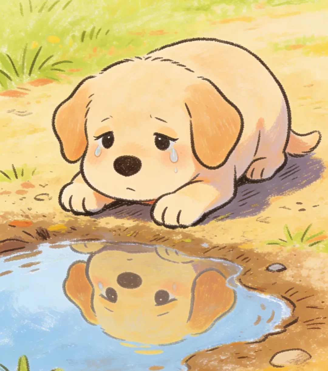 我看着泪从我脸上掉落,掉在了下方的水洼里。我闻了闻,闻到了艾草刺鼻的气味,也听到了蜜蜂工作时的嗡嗡声,看到了水洼里的自己。风吹过我的脸,水洼里的那只狗趴着,我知道,那是我自己。又一阵风吹过,水洼里的倒影泛起了阵阵涟漪。