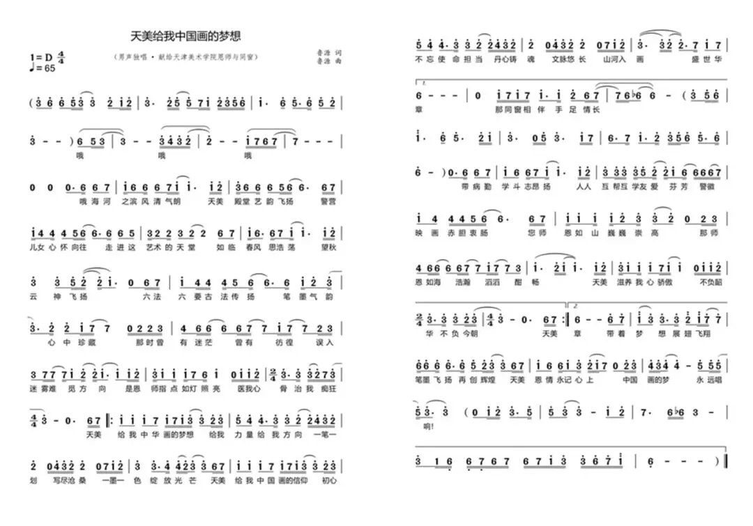 《天美给我中国画的梦想》为男声独唱原创作品,由鲁源作词、作曲,深情献给天津美术学院各位恩师与同窗挚友。