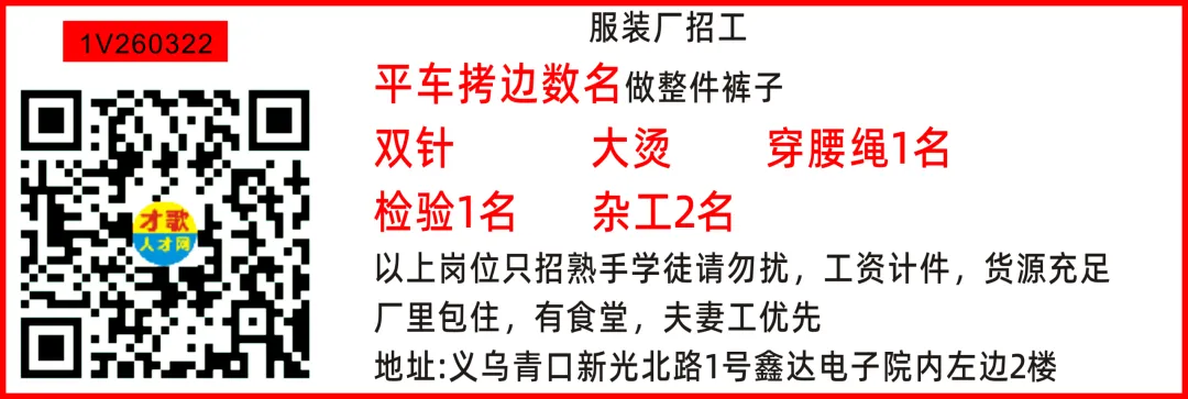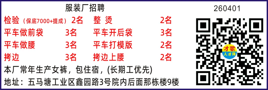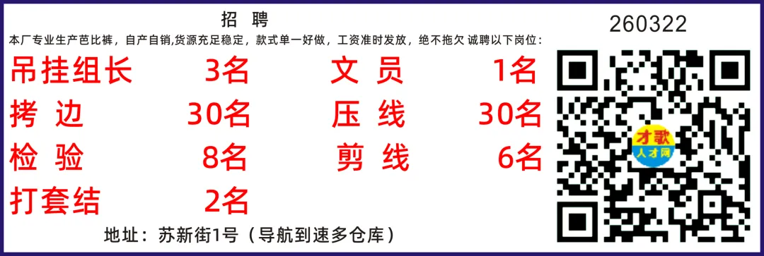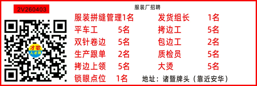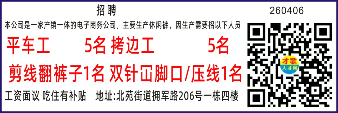 双针:2名 (同步车压线、卷脚口 ) (计件工资 7000-12000元)