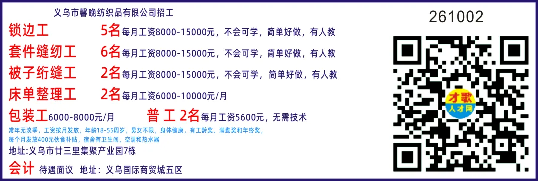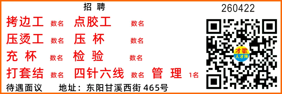 本厂生产外贸订单,订单量增加,现招以下人员: