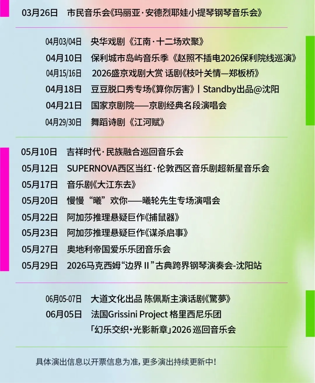6、由于盛京大剧院停车位有限,且周边道路狭窄,极易在入场高峰造成拥堵。为避免迟到,请您尽量搭乘公共交通工具前往,如需自驾,请预留充足的时间,以免影响您准时入场观演!