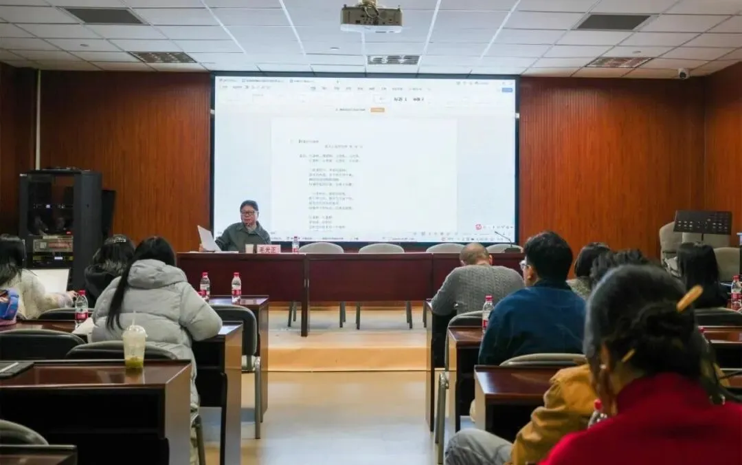上午,董夫腾老师逐一聆听部分参训学员提交的歌曲作品,肯定各位学员的创作热情及创作水平,并针对学员的作曲构思及创意想法,展开专业分析及点评,鼓励学员们多写、坚持写,创作出更多个性化的优秀作品。同时,结合近几届全国群星奖浙江入选作品,从题材选择、音乐编配、舞台呈现等维度深度剖析优秀音乐精品的创作特点,为参训学员提供音乐创作方向。