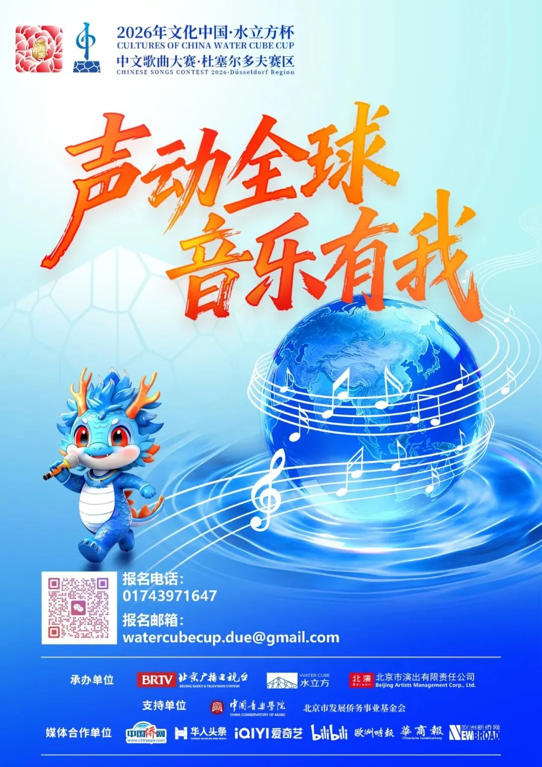 3月10日,2026年“文化中国·水立方杯”中文歌曲大赛杜塞尔多夫赛区启动仪式在德国顺利举行。