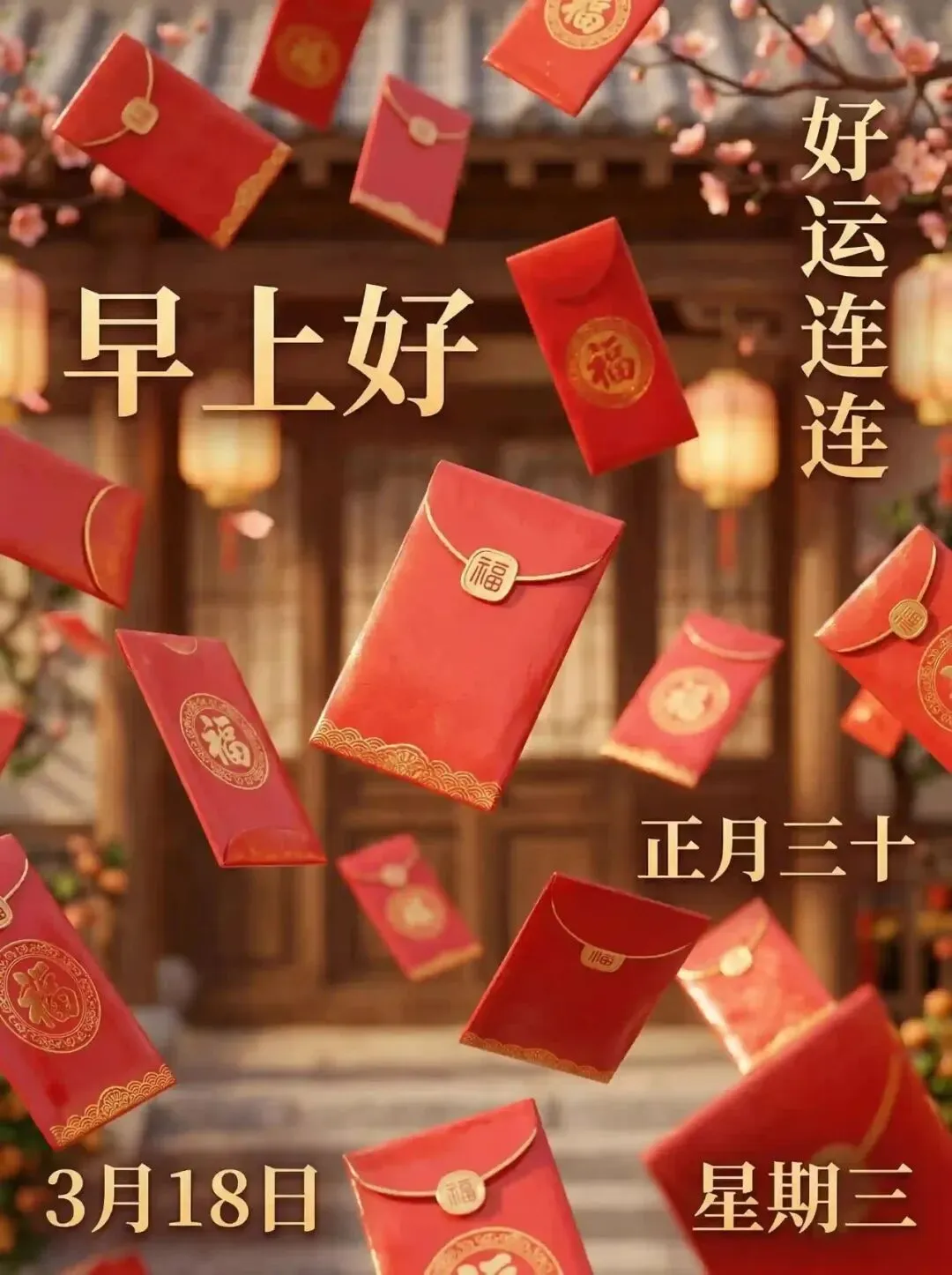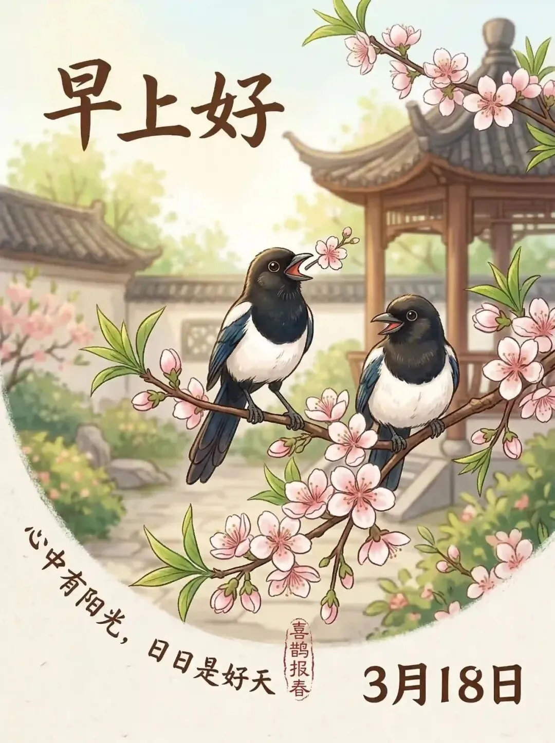 ╭══ 🌟祈福迎祥 ══╮┊🎉 3月18日 · 星期三┊🌹 福气满满┊💖 财源广进┊🎁 岁岁平安╰══════════════╯