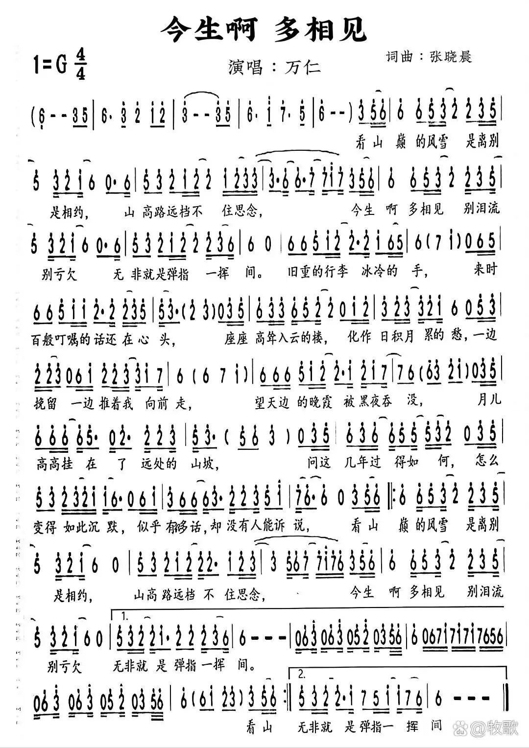 万仁《今生啊 多相见》歌曲简谱