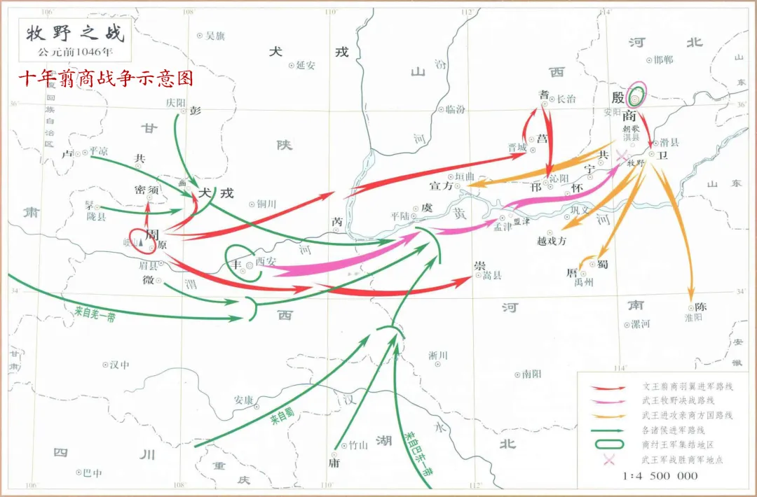 从公元前1056年文王受命称王,至公元前1046年牧野决战,翦商战争整整持续十年。十年间,商周双方的博弈始终同步推进。