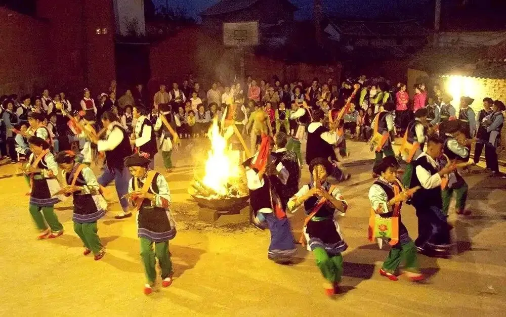 这痒,生在滇西的风里,长在彝家的日子里。农忙歇了,喜事近了,节令到了,只要太阳还悬在天上,热闹就不算开场。老人倚着门,捻着烟袋笑;姑娘理着裙摆,耳上银饰轻轻晃;小伙把三弦抱在怀里,指尖不住地轻弹。山风绕着寨子转,炊烟漫过屋顶,都在等一个时辰——等日头擦着西山,把云染成橘红,等暮色轻轻落下来,等第一声芦笙,划破山野的静。