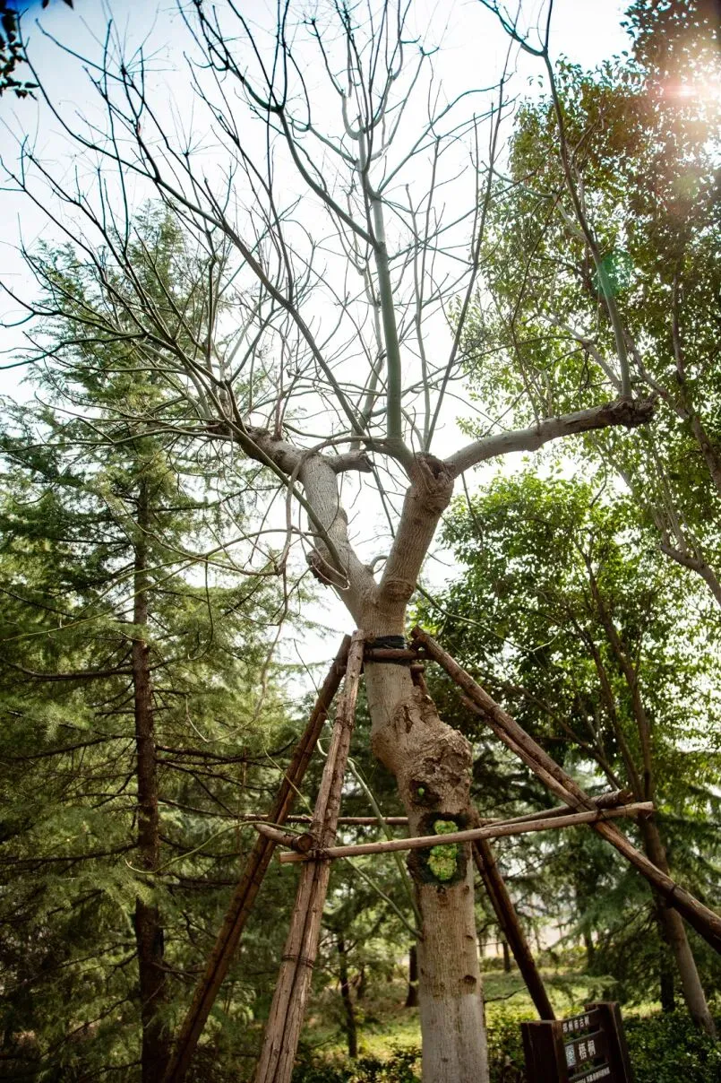 古树的北边是新郑国际机场,1997年通航那天,梧桐应当看见了——第一架飞机从远处飞过,拖着长长的尾迹云;2013年3月7日,郑州航空港经济综合实验区正式批复设立,古树脚下的陈楼村也变得热闹起来,随着规划调整整体搬迁,2014年,村民们离开了老宅,但这棵梧桐树被保留了下来;又过了3年,2017年9月,第十一届国际园林博览会就在距离古树不到两公里的园博园开幕,“一园藏古今,四季皆盛景”的园博园成为人们休闲旅游的好去处。
