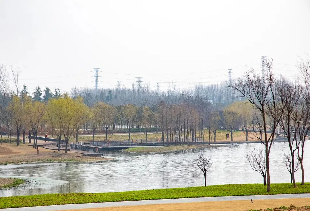 修建园博园时,梧桐树边的梅河与园博园的水系实现了连通,蜿蜒的梅河在这里形成了小小的湖泊,湖边的柳树已经发芽,一个街边公园为宽阔的梁庄大道增添了许多生机。