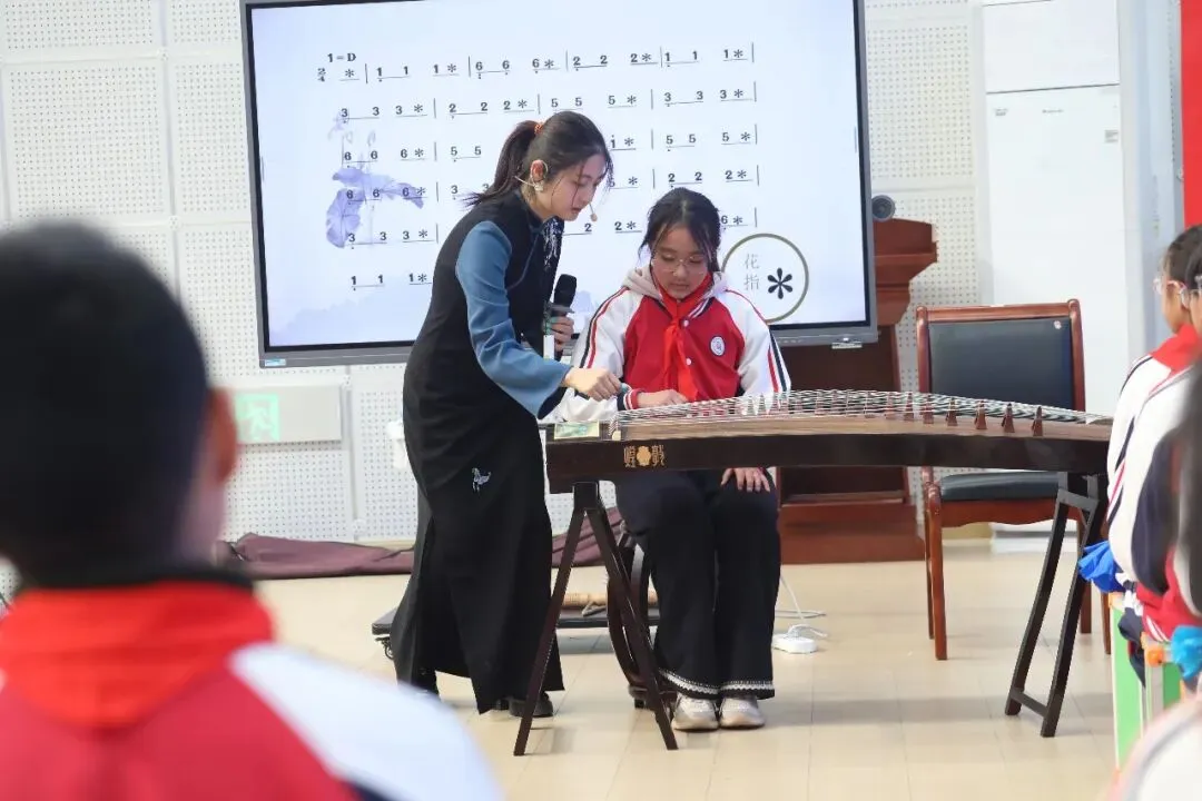 整堂课实现诗画乐融合,在拓展环节以一曲《青花瓷》让学生感知传统乐器与现代音乐的融合,树立文化传承意识,以趣味实践让学生领略传统音乐魅力。