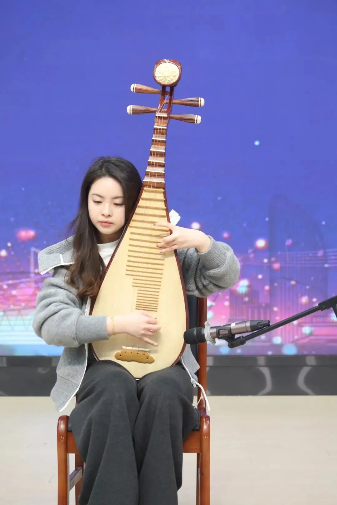 中午,与会教师参观了小越街道中心小学校园文化。随后,华维文澜中学的曹逸清和道墟街道中心小学的许涵两位新教师带来精彩的才艺展示。青年教师以扎实的专业基本功,分别呈现了动人的声乐演唱与悠扬的琵琶演奏,展现了新生代音乐教师的朝气与潜力,赢得在场教师阵阵掌声,也为活动增添了青春跃动的亮色。