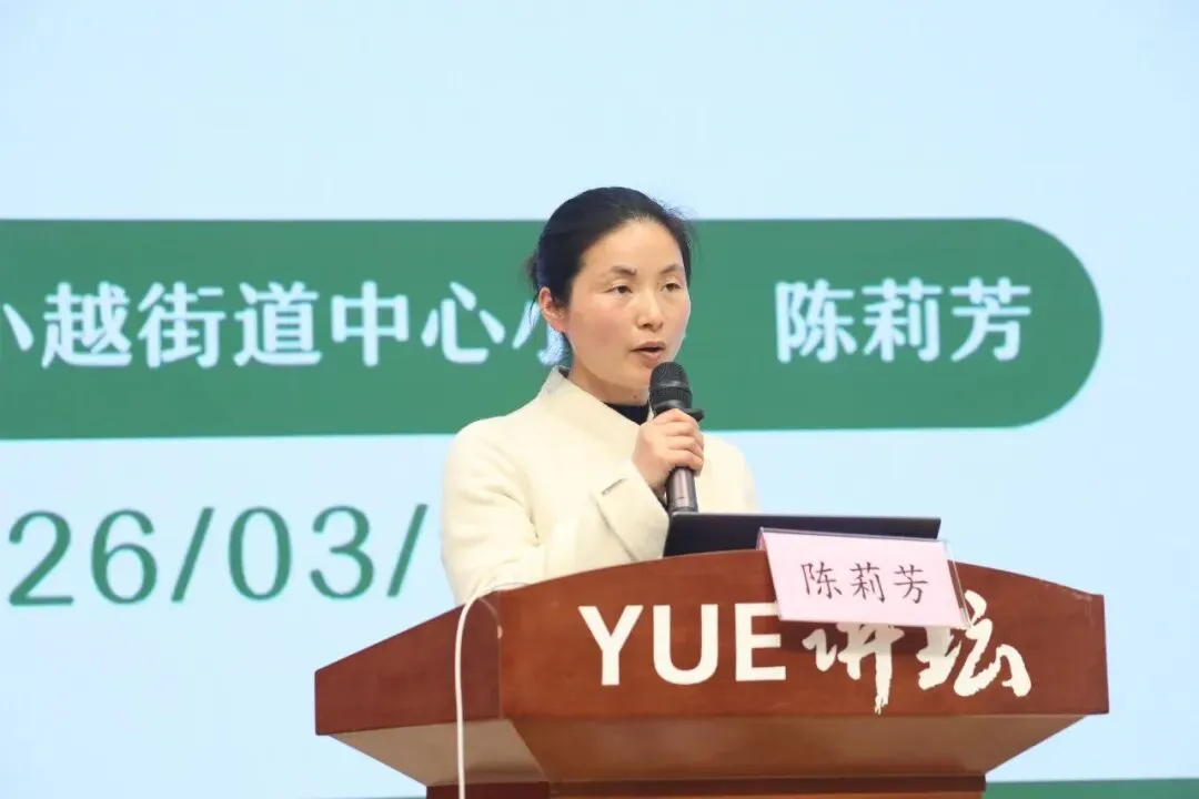 小越街道中心小学的陈莉芳老师作了题为《用音乐,点亮生命》的经验分享。陈老师讲述了她从教二十年的心路历程。她认为,音乐教育不仅是传授技能,更是育人工程。从最初“教音乐”到如今“用音乐育人”,陈老师在实践中总结出“始于尊重、成于唤醒、归于平常”的教育理念。