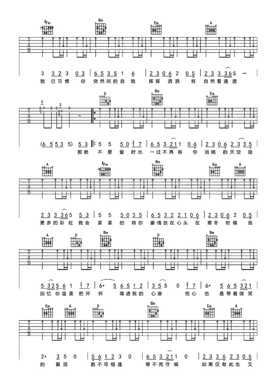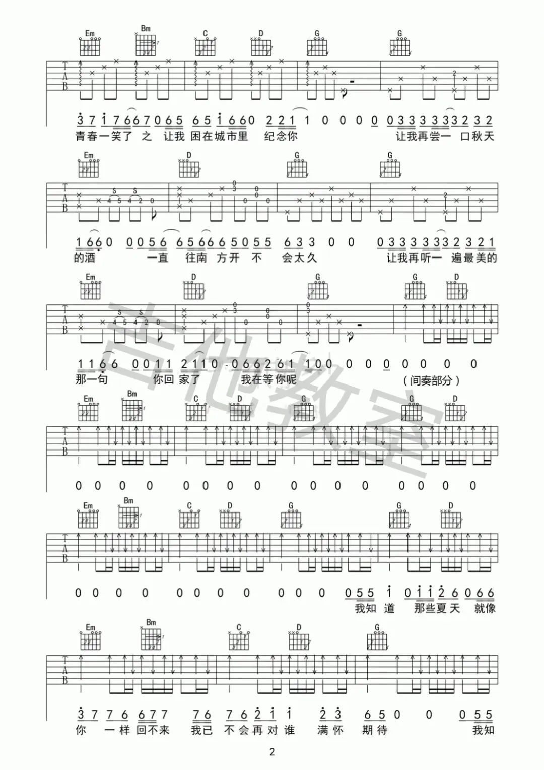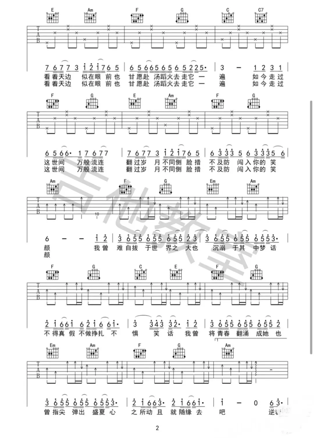 这首曲子的器乐段落难度适中,旋律记忆点强,不管是新手练习还是用于弹唱伴奏,都能感受到它的独特魅力,同时能锻炼吉他手对情感的精准传递能力。