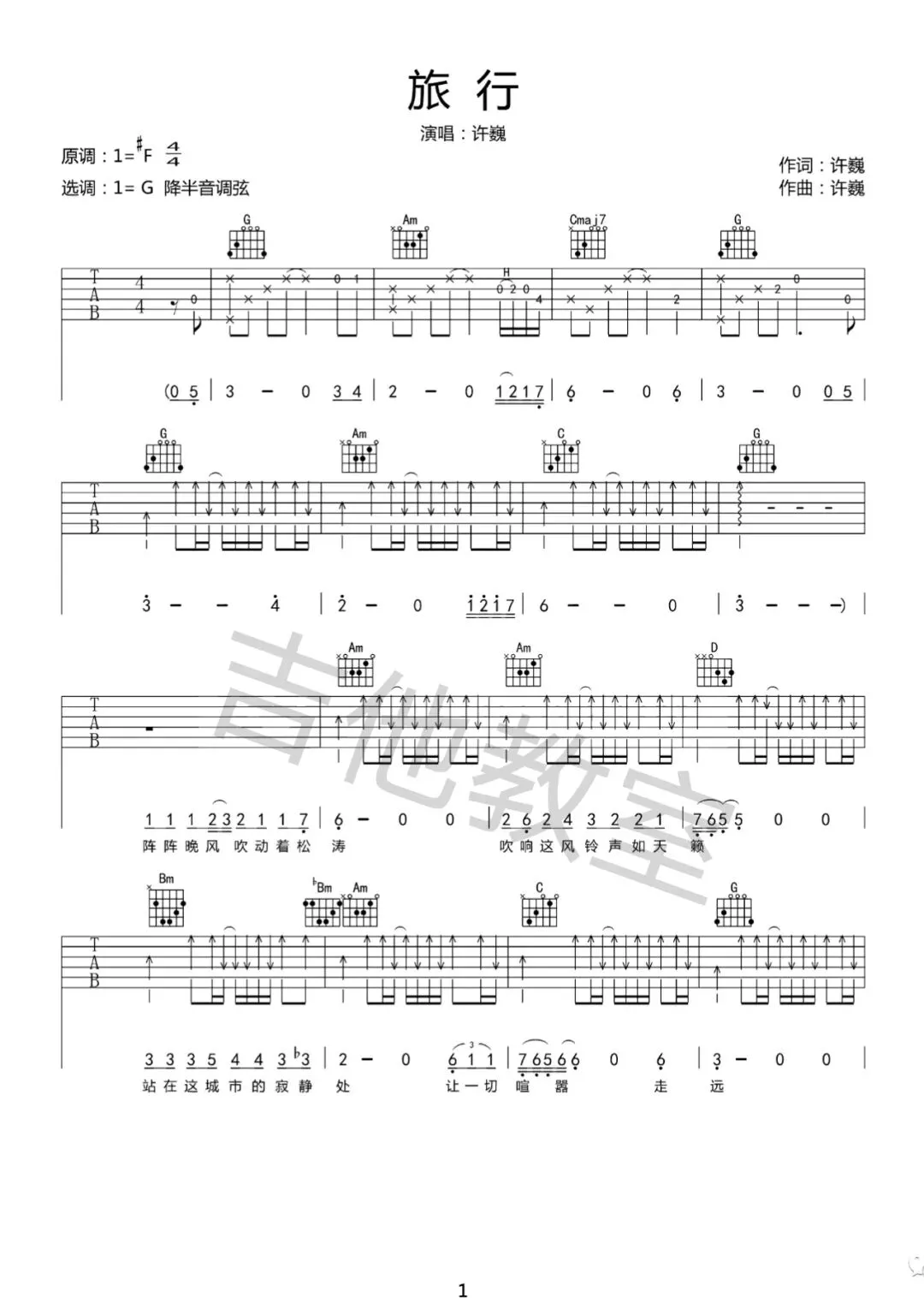 这首曲子的器乐段落很适合练习长音的演奏,通过对音色和力度的把控,展现出旅行中的自由与惬意,能让吉他手更好地理解器乐段落与歌曲意境的融合。