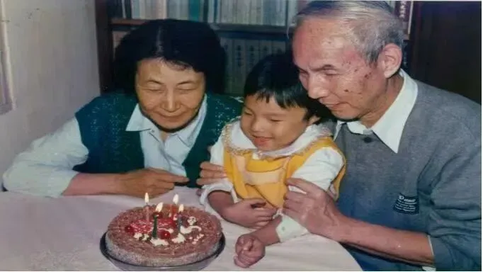 黄音4岁生日时和爷爷奶奶的合影 受访者供图