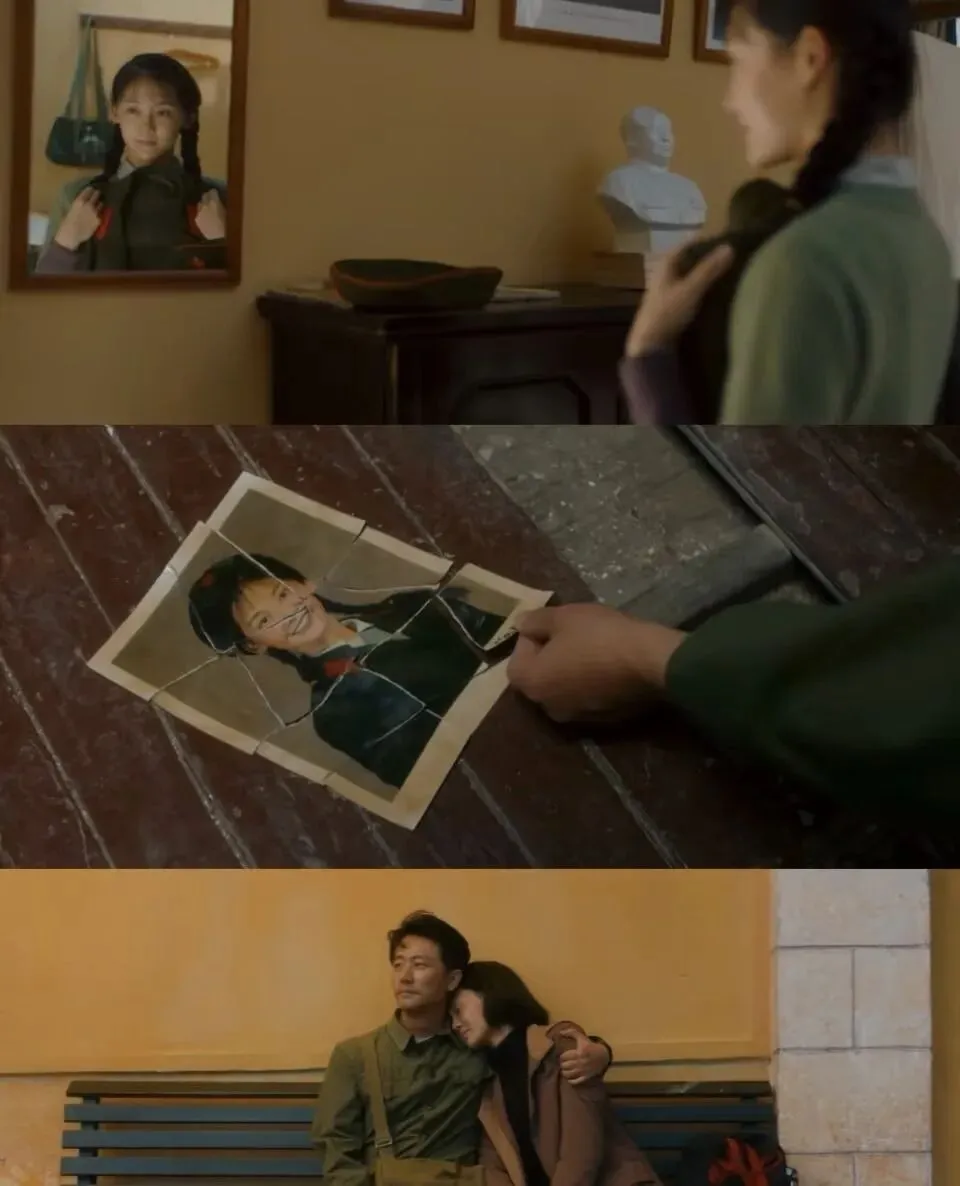 结果在地板的洞里,翻出了当年何小萍被撕碎的照片。刘峰一片一片捡起来,粘好,后来又送给了何小萍。这里没有一句台词,但此时无声胜有声。这张粘好的照片,承载了多少理解、怜惜与尊严啊。