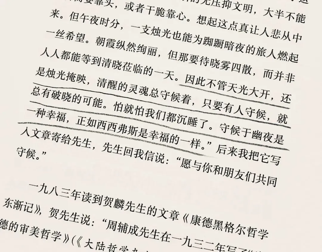 人呐,一辈子,也不一定能碰上这样一位恩师,从此改变你一生。事实上,这也取决于双方人格的深度。能让周辅成这样的先辈青眼有加,不也是因为当时“毛头小子”的提问,让老师眼中“精光一闪”,感受到久违的“思想快乐”吗?