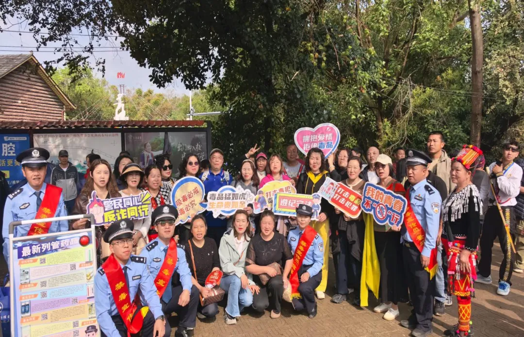 为深入推进全民禁毒宣传教育工作,切实筑牢边疆地区禁毒安全防线,近日,德宏傣族景颇族自治州盈江县禁毒大队紧扣“健康人生、绿色无毒”主题,联合多部门在允燕山目瑙纵歌节庆主会场及周边区域开展禁毒宣传活动。