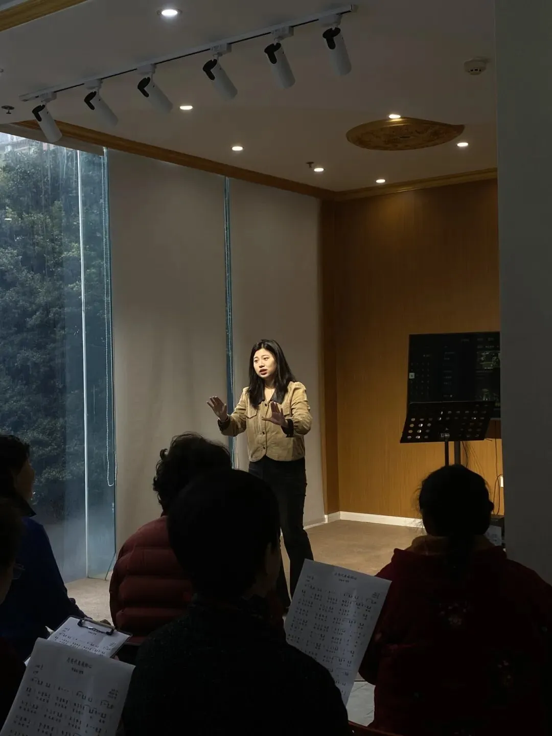公开课上,授课老师结合中老年人的歌唱特点,用亲切、易懂、接地气的方式,耐心讲解歌唱技巧。从正确呼吸、放松嗓子,到发音吐字、音准节奏,再到合唱时的互相配合、声音统一,老师一步步示范、一遍遍带领练习,让大家听得明白、学得轻松。