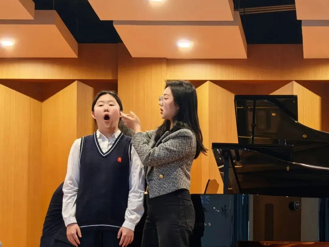 “课堂上,老师从“腔体”展开细致讲解,将抽象的发声原理拆解为通俗易懂的技巧要点,每一个步骤都讲解得生动且形象。老师针对我们每个人的问题逐一指导,手把手调整发声姿势,原本生硬的发声技巧,经老师点拨后,瞬间找到发力点,声音不仅变得更圆润通透,整体演唱的层次感也瞬间拉开。这节课让我明白,声乐演唱的核心在于对身体的掌控与运用。未来我会勤加练习,把课堂所学融会贯通,在声乐之路上持续精进,不断解锁更动听的歌声。”——高一马卓嘉祺
