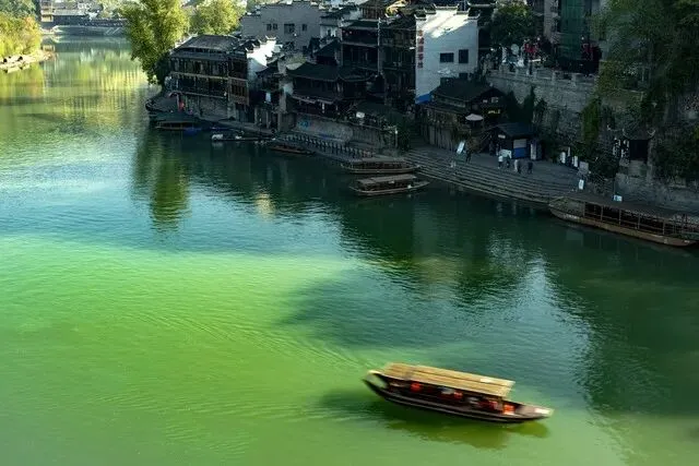 我在凤凰古城住了一宿。要看古城的傍晚,还要看古城的黎明。此时,夕阳西下,渡船停泊在岸边,像一只只凤凰,情不自禁地驻足栖息,点燃起一盏盏充满情韵的鱼灯,和岸上的阿哥阿妹共眠于夜色。一条条渡船在河水中宛如羞涩的少女,享受河水的温柔和纯洁,将凤凰点化成美丽的永恒。此刻,我发现那些古老的渡船,停泊的渡口,流淌的河水还都在这里。