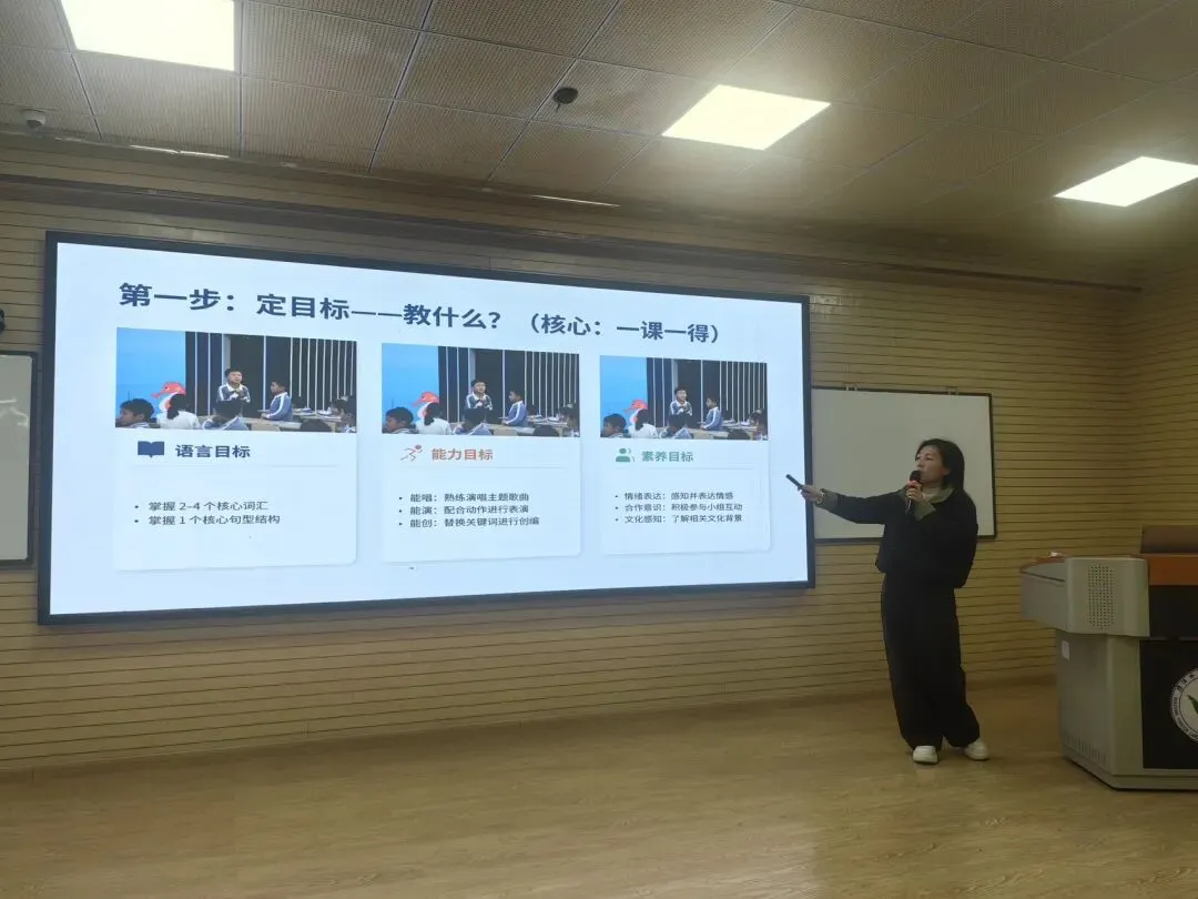 立足新课标核心素养要求,阐释歌曲教学在激发学习兴趣、降低语言焦虑、强化语音语感、培养文化意识与思维品质等方面的重要价值,让老师们明晰“为何教”。