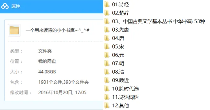 除了可以在群里随时向各派大佬请教问题之外,我社还雅擅藏书。44个G的涵盖各朝各代诗集诗话的清莲电子书库随时可以取阅,纸质书如李太白全集、李商隐诗歌集解、杜诗详注等也都可以向社内同学借阅到哦!好心的学长学姐说不定还会主动借你一本笺注