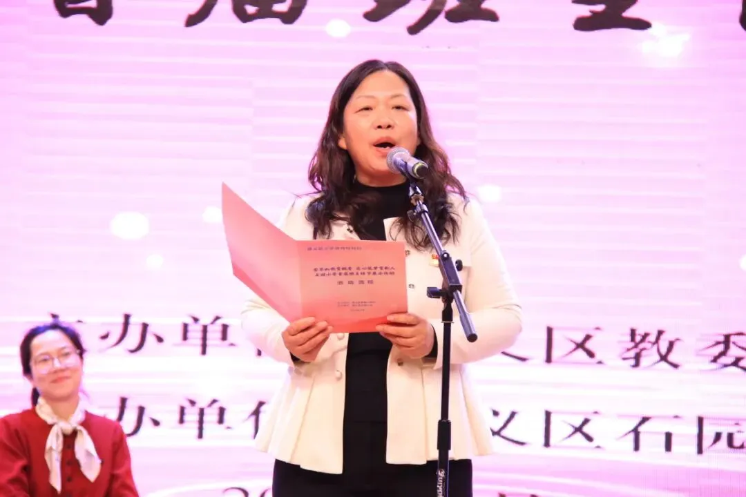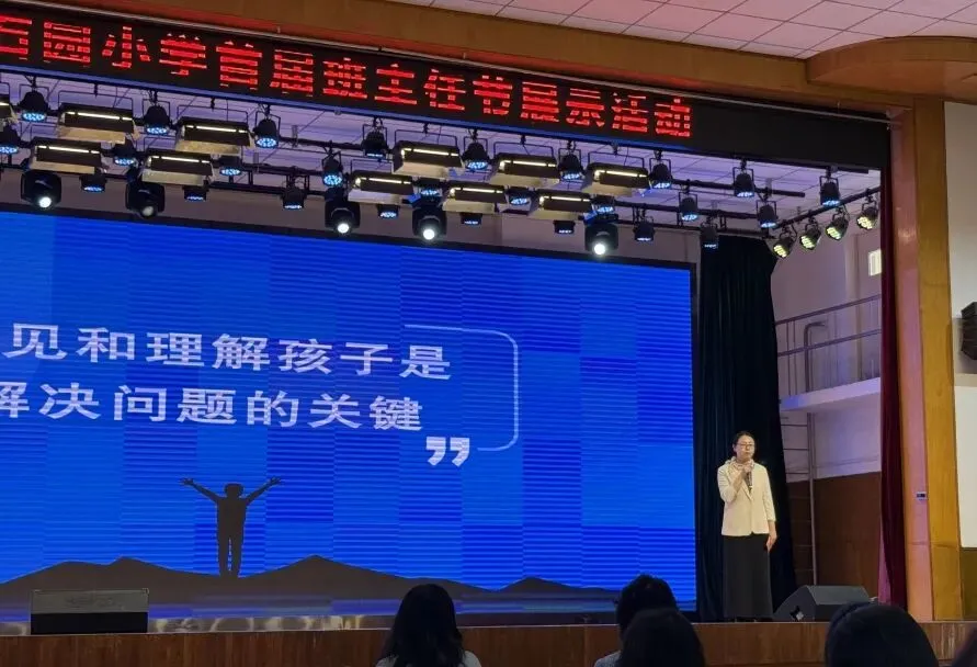 活动伊始,石园小学校长杨宏伟以《芳华如歌育桃李,匠心筑梦育新人》为题致辞。她深情赞誉班主任是“校园里最早迎接晨曦的人”,点滴关爱藏在清晨叮嘱、课间谈心、作业本批注里,班主任平凡坚守里的爱与责任,是最动人的教育“超能力”。