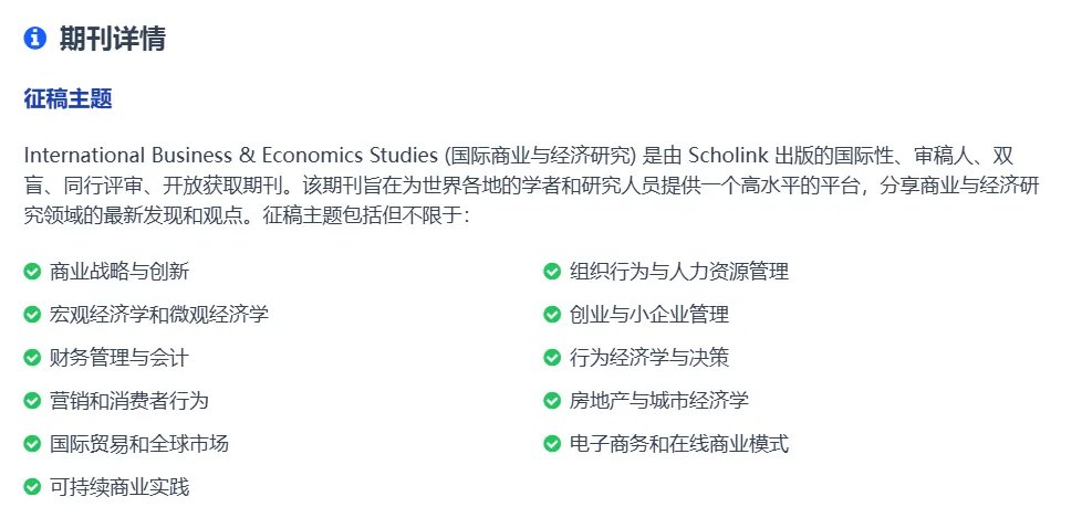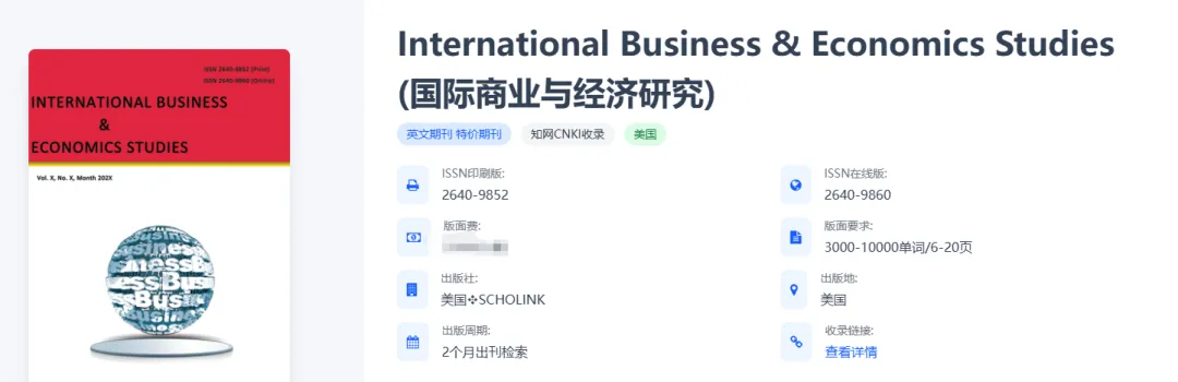 International Business & Economics Studies (国际商业与经济研究) 是由 Scholink 出版的国际性、审稿人、双盲、同行评审、开放获取期刊。该期刊旨在为世界各地的学者和研究人员提供一个高水平的平台,分享商业与经济研究领域的最新发现和观点。