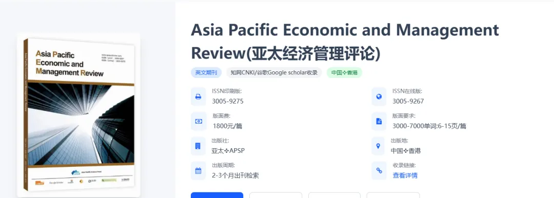 期刊名称:Asia Pacific Economic and Management Review(亚太经济管理评论)