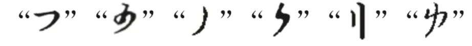 号,《研究》认为乃“微高”,具体“微高”音的音高是不确定的。作者提出“六种符号”的观点,即姜谱全部使用的符号共有