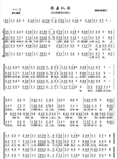 《游击队歌》是一首群众歌曲。G大调,4/4拍,进行曲风格,坚定、轻快、富有弹性,中速稍快。