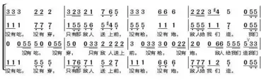 歌曲为带再现的单三部曲式(A—B—A'),结构工整、易记易唱。语言口语化、战斗性强,生动展现“没有吃没有穿,自有敌人送上前”的革命乐观主义,将战术智慧与必胜信念融为一体。