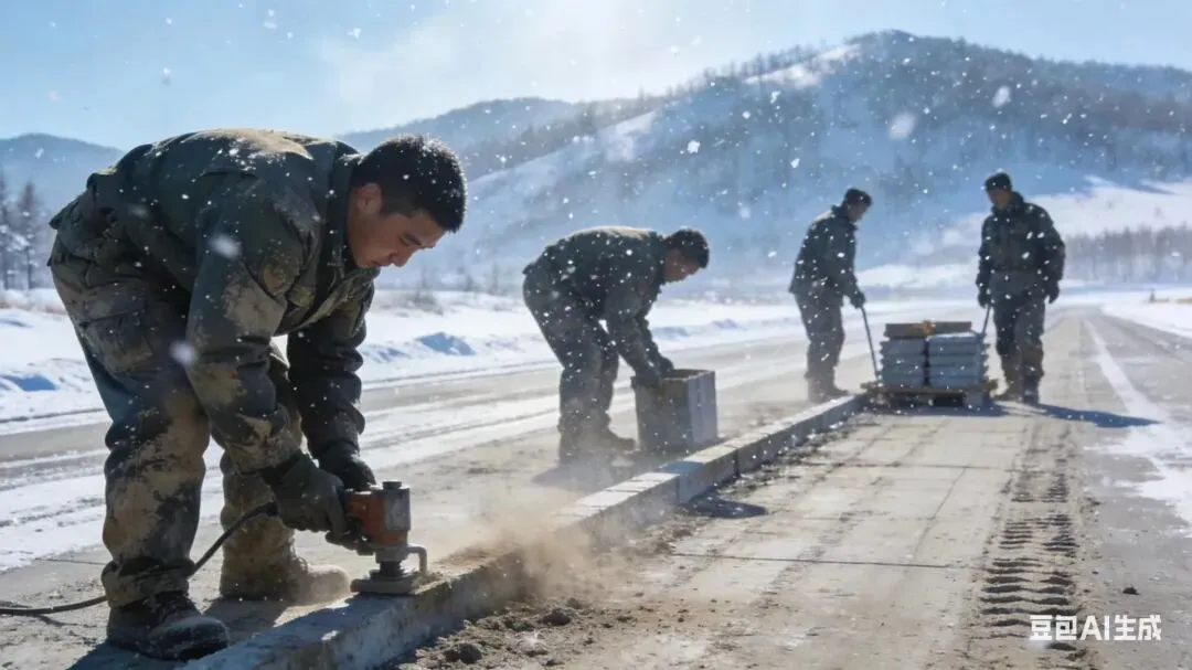 歌词开篇即以极具冲击力的地理意象,将听众瞬间带入工程兵战斗的“生命禁区”。“雪域高原”与“兴安岭下”,一西一东,勾勒出空军国防工程建设的战略纵深。在“缺氧压不垮铁的脊梁”与“极寒冻不住热血满腔”的对仗中,词作者巧妙运用了“缺氧”与“铁脊梁”、“极寒”与“热血”的强烈反差,凸显了空军工程兵官兵们以血肉之躯对抗自然极限的钢铁意志。