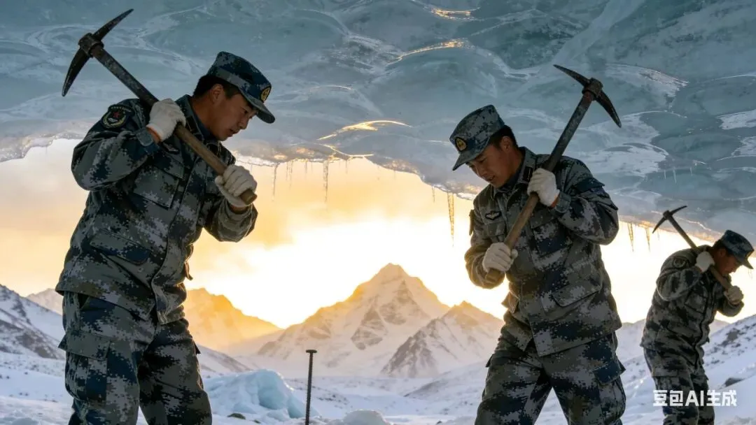 “冰峰为碑,刻下咱无声的誓言”,这是全词的点睛之笔。在常人无法生存的高原,官兵们将誓言刻在冰峰之上,这既是地理实景的描绘,更是精神图腾的象征——他们用生命铸就的工程,本身就是一座座无言的丰碑。“风似刀雪如枪,征衣单薄志如钢”,将恶劣的自然环境拟人化为敌对的刀枪,而官兵们仅凭“征衣单薄”却“志如钢”,这种物质与精神的巨大张力,生动刻画了工程兵“一不怕苦、二不怕死”的战斗精神。