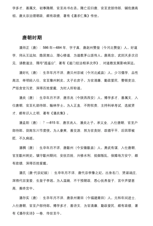 潘求仁(隋→唐初):生卒年月不详,隋末唐初杭州钱塘(今浙江杭州)人。博学多才,善属文,初事隋朝,官至尚书右丞。隋亡后归唐,官至吏部侍郎,辅佐唐高祖、唐太宗治理朝政,颇有政绩,著有《潘求仁集》传世。