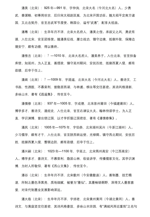 潘夙(北宋):1005年—1075年,字伯恭,北宋湖州吴兴(今浙江湖州)人。少习儒学,颇有才干,入仕北宋,官至陕西转运使、光禄卿。镇守西北期间,安抚百姓,抵御西夏入侵,整顿边防,颇有政绩,后卒于任上。