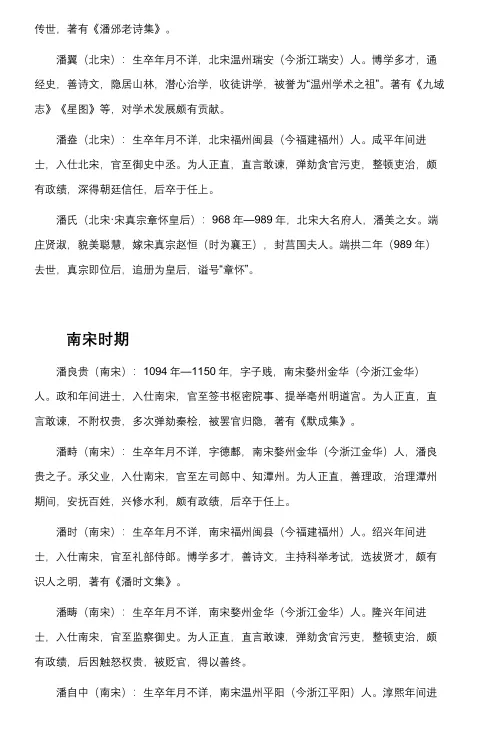 潘自中(南宋):生卒年月不详,南宋温州平阳(今浙江平阳)人。淳熙年间进士,入仕南宋,官至著作郎。博学多才,善诗文,潜心修史,参与编撰《宋史》,其著作对后世研究南宋历史提供了重要参考。