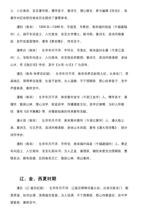 潘氏(辽·道宗妃嫔):生卒年月不详,辽道宗耶律洪基之妃。出身汉家名门,貌美贤淑,知书达理,深得道宗宠爱。为人低调,不干预朝政,悉心侍奉道宗,宫中声望甚高,善终宫中。