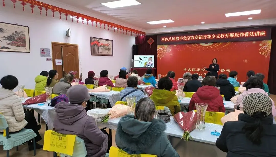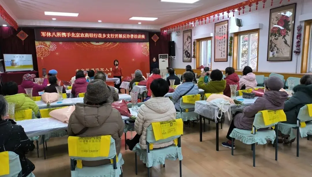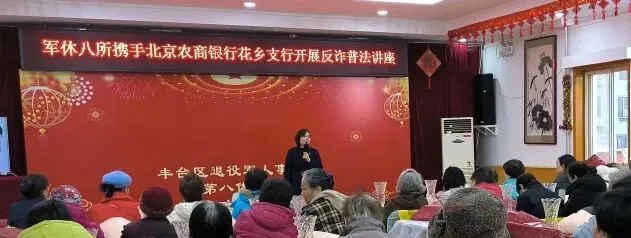 随着数字化生活的不断普及,针对老年人的电信诈骗手段愈发隐蔽多样,为切实筑牢军休干部防诈骗“防火墙”,第八休养所携手北京农商银行花乡支行,共同举办“情系军休干部 普法服务同行”反诈普法讲座,为40余位军休干部送上一堂生动实用的防骗知识盛宴。