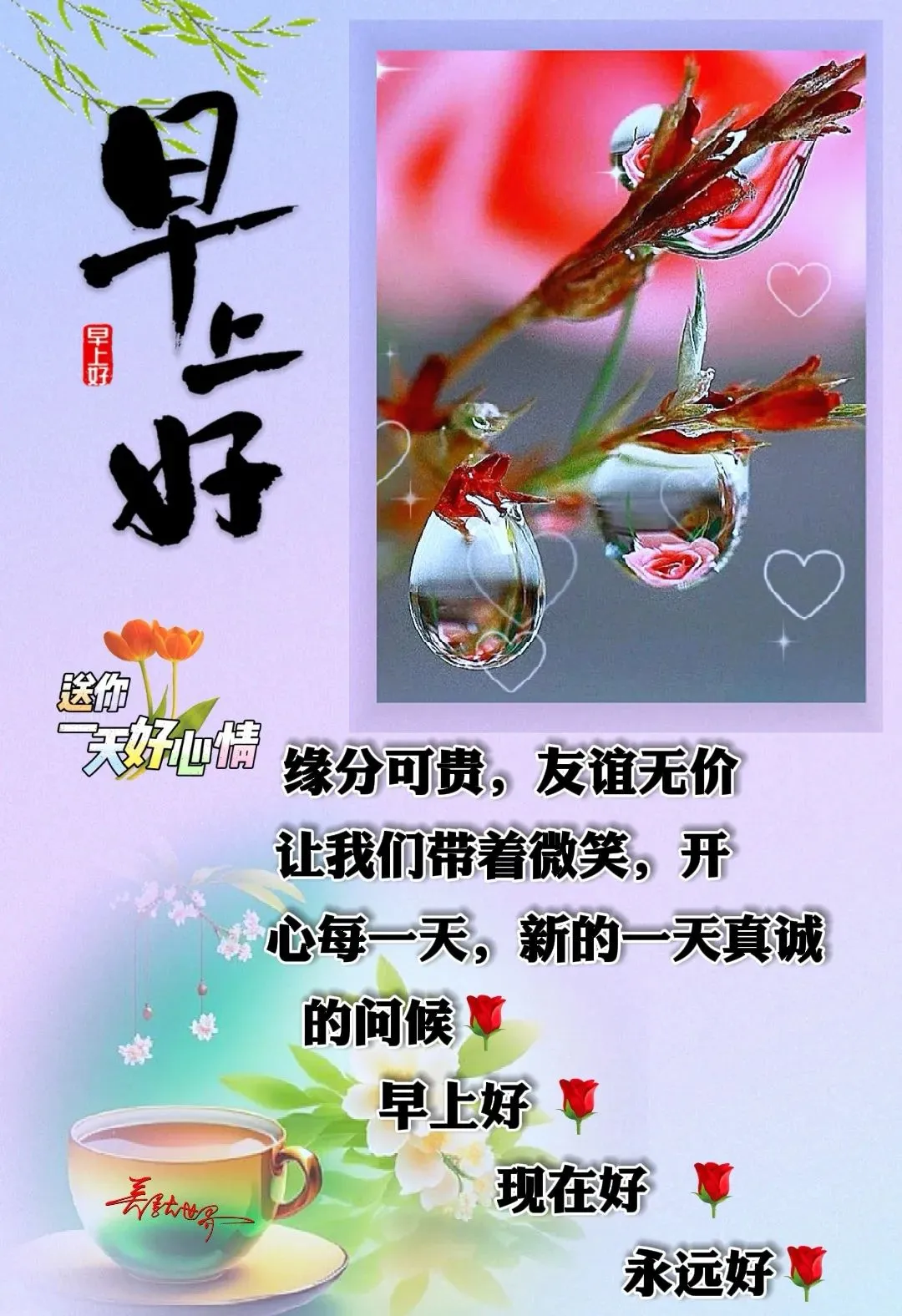 3、大家早上好!当我们老了,剩下的朋友,都像金子一样珍贵;珍惜友情,珍惜缘分,珍惜健康,愿我们幸福快乐每一天-早上好
