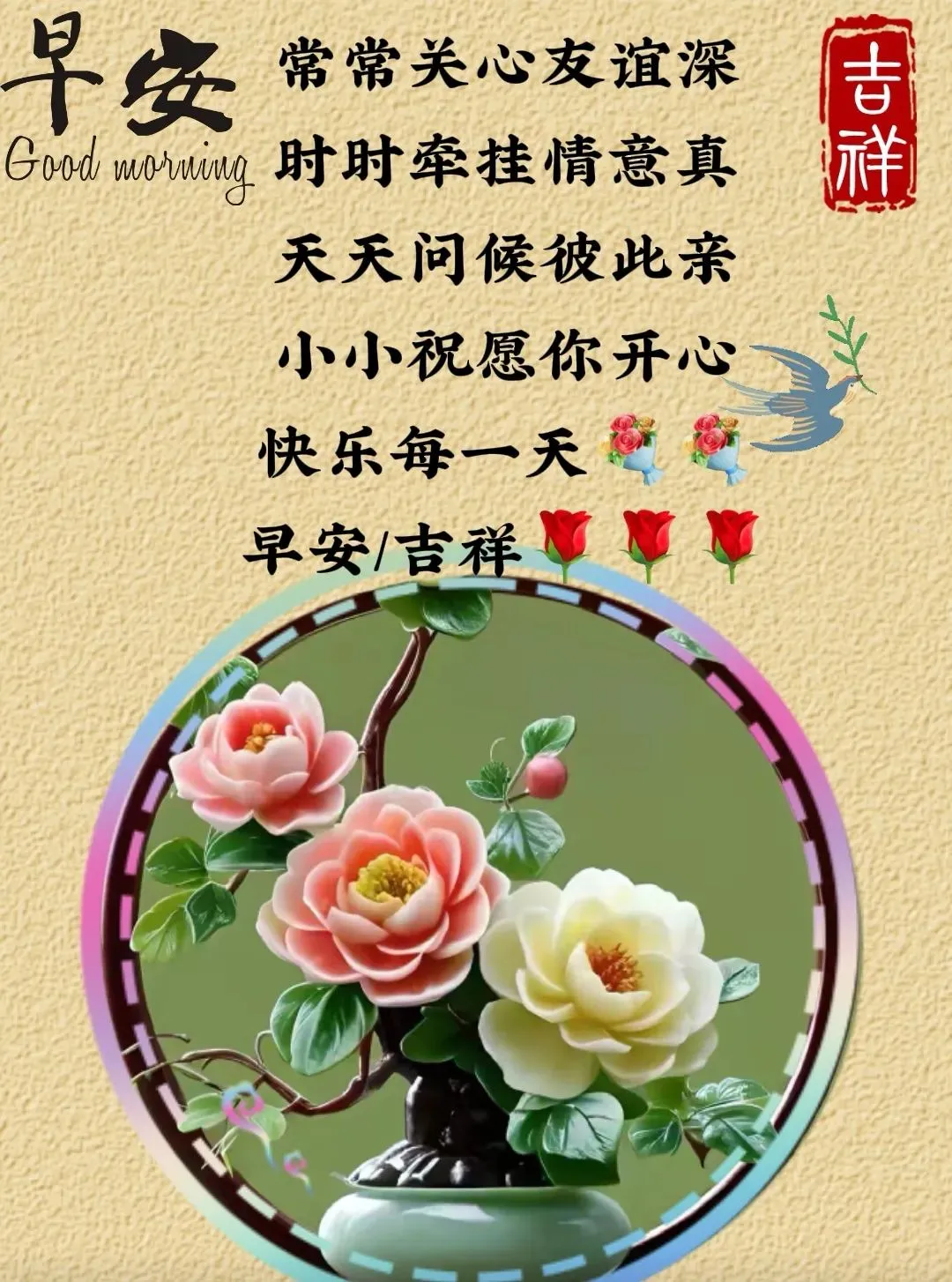 6、我的朋友!岁月不声不响,关爱深深珍藏,又是新的一天,祝福一如既往:平安、健康、吉祥、幸福随行!朋友们,早上好!