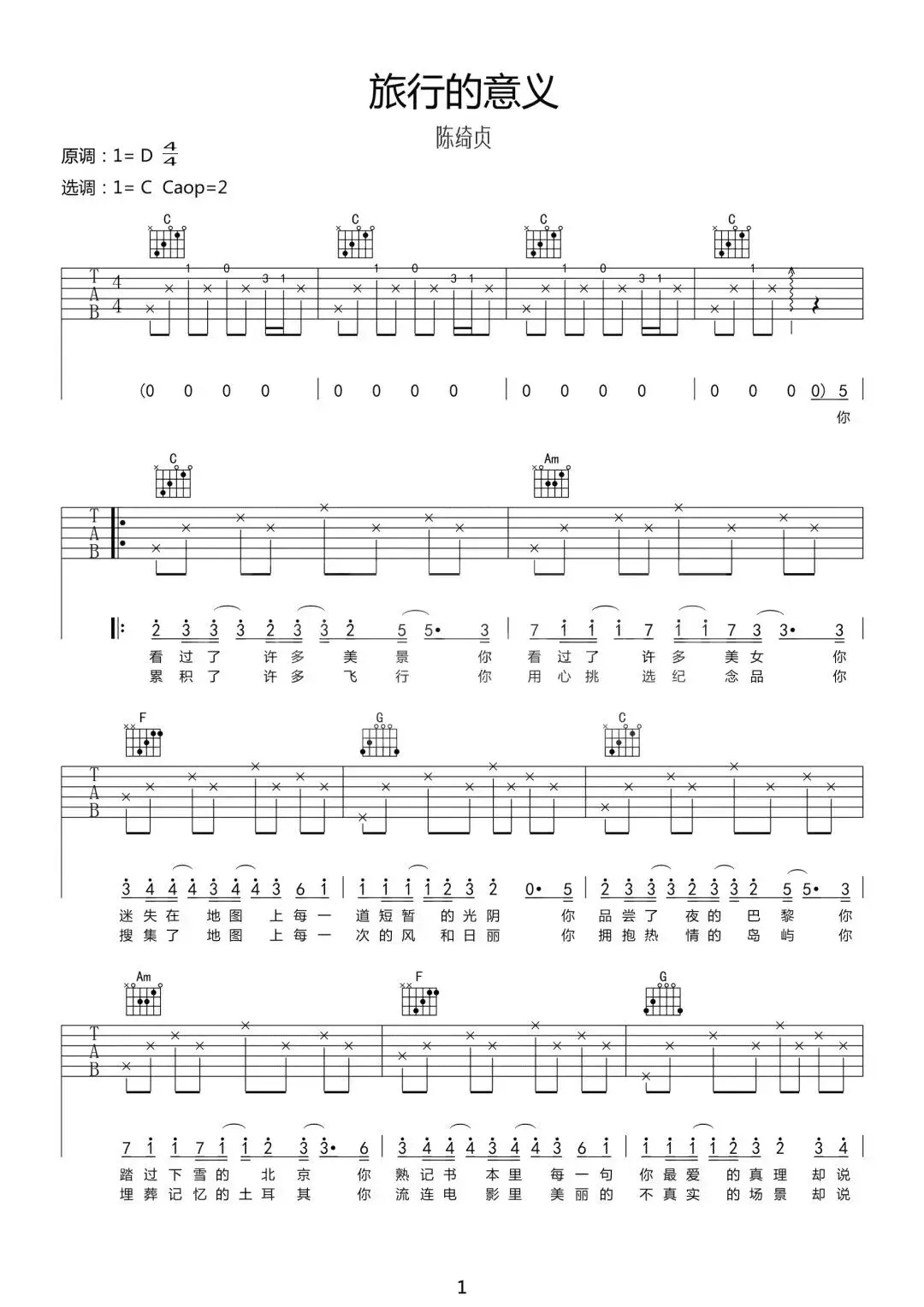 陈绮贞《旅行的意义》是平缓的流行民谣,节奏简单。歌词围绕旅行与人生的意义展开。适合独自弹唱或和朋友分享,旋律温柔,氛围宁静治愈。