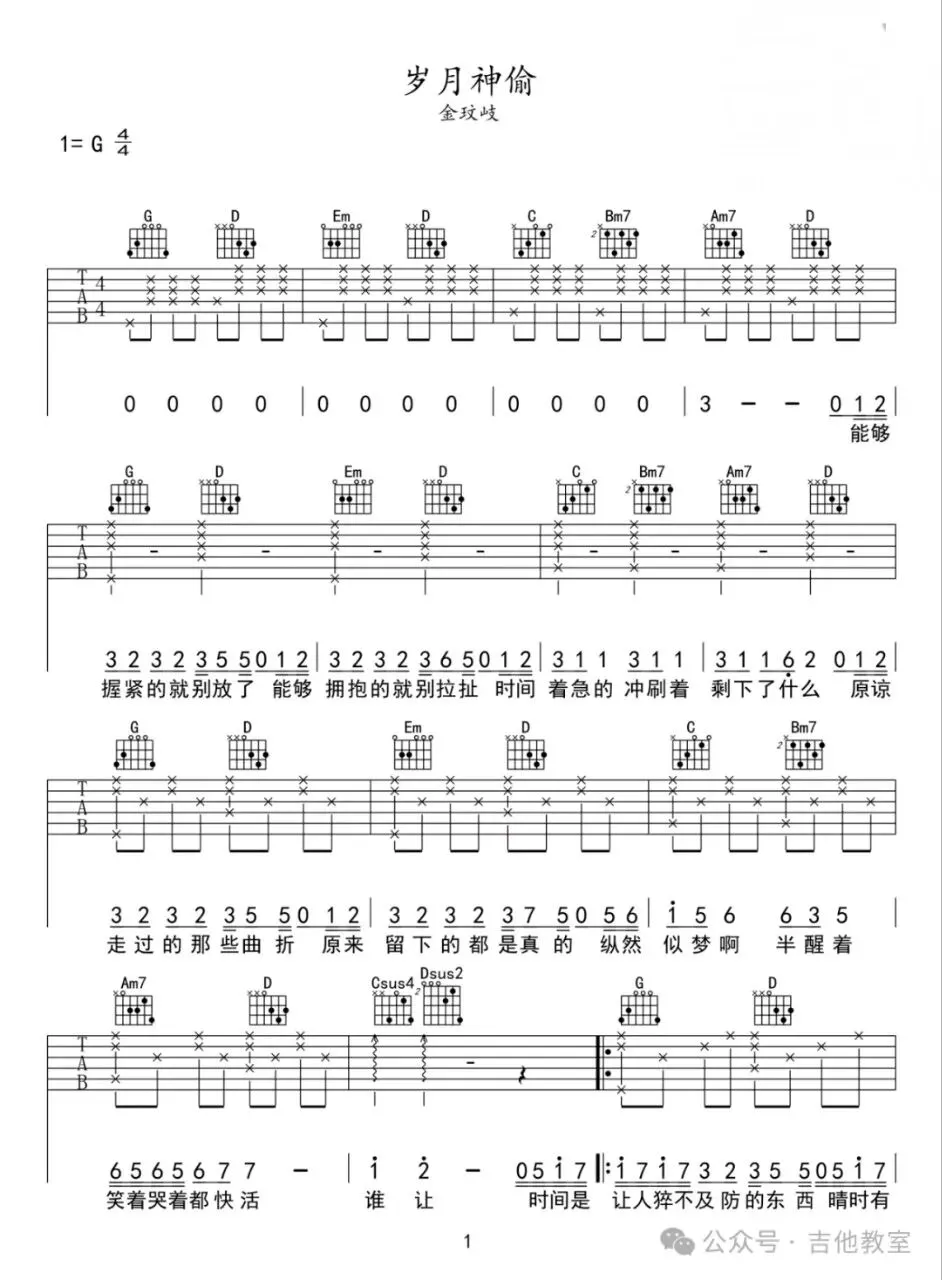 金玟岐《岁月神偷》是轻柔的流行民谣,伴奏节奏温和。歌词细腻描写时间流逝的感受。适合整理旧物、回忆往事时弹唱,氛围温暖又带一点伤感。