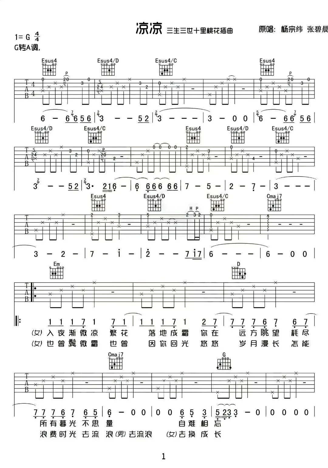 杨宗纬、张碧晨《凉凉》旋律悠扬。歌曲情感表达细腻深沉。适合夜晚或情绪浓厚时弹唱,氛围感强,带有深情的忧伤。
