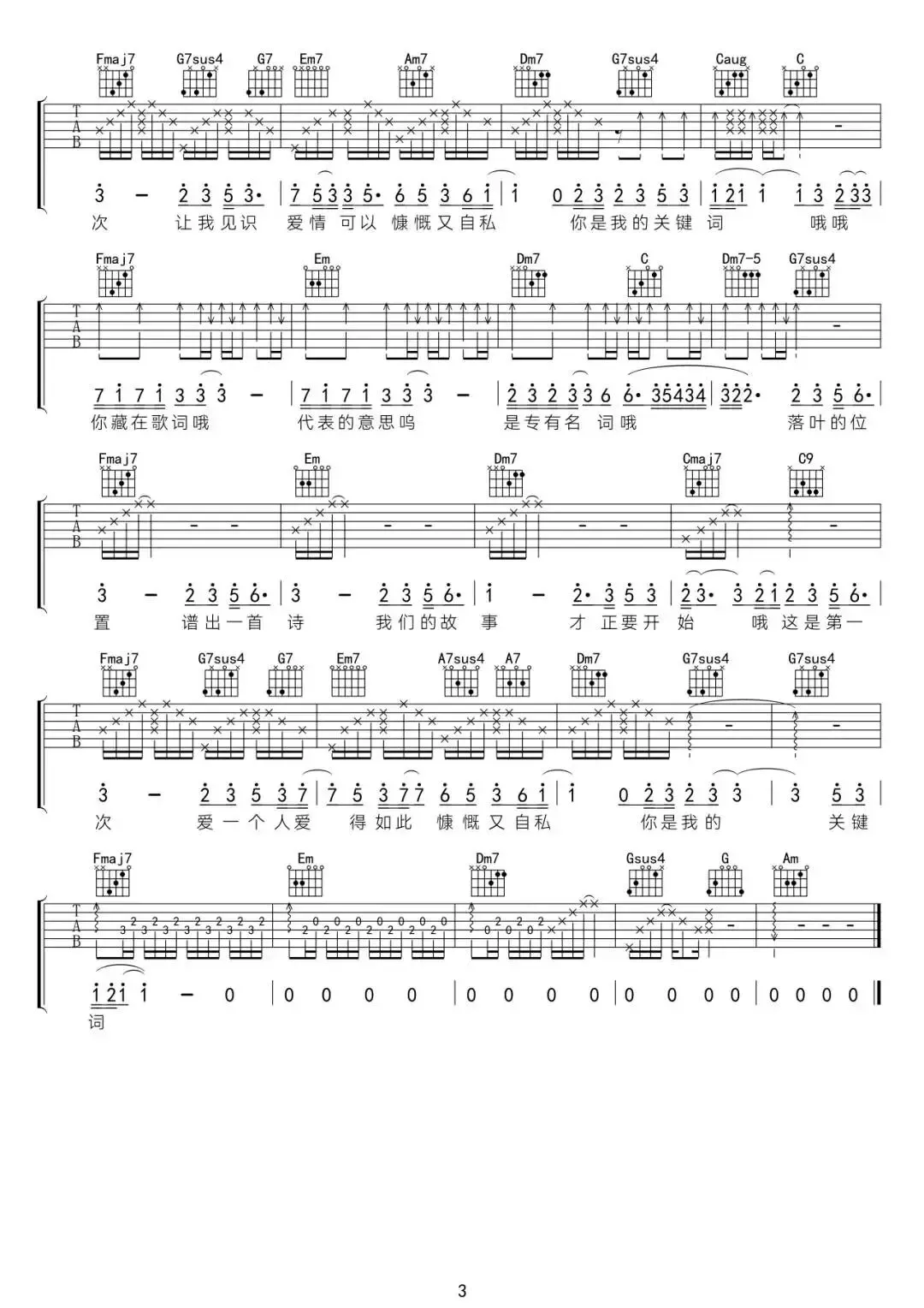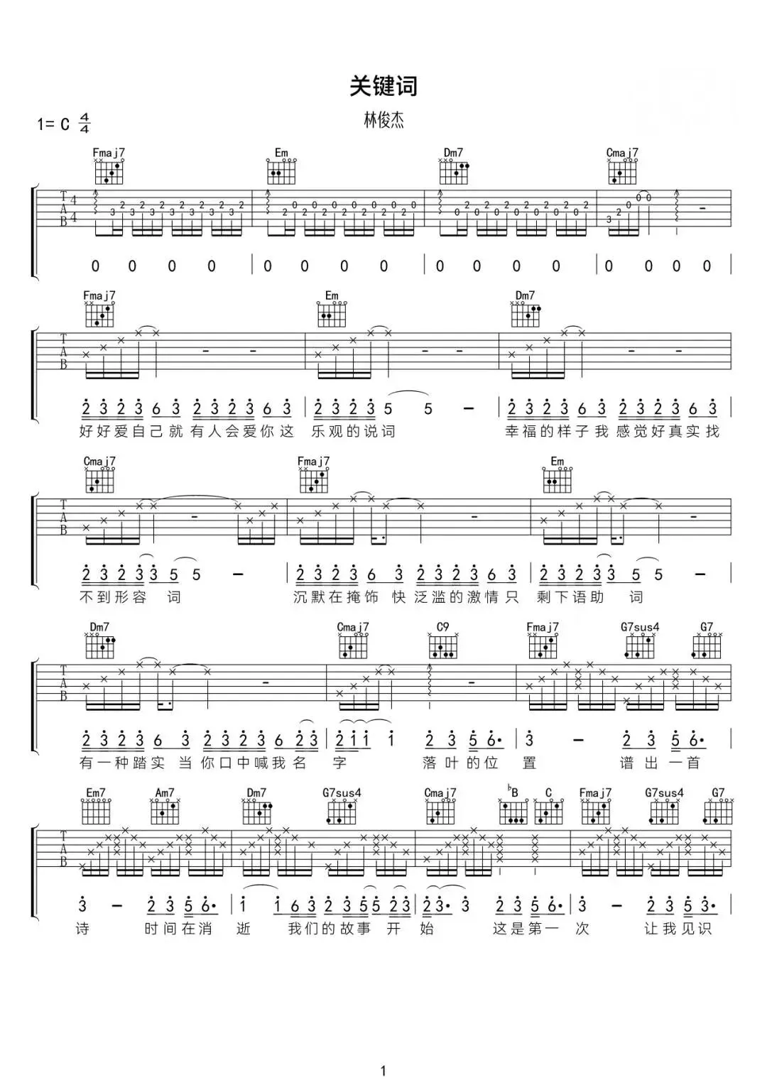 林俊杰《关键词》是抒情流行曲,旋律温柔。吉他伴奏简单。适合安静弹唱,氛围细腻,情感表达柔和。