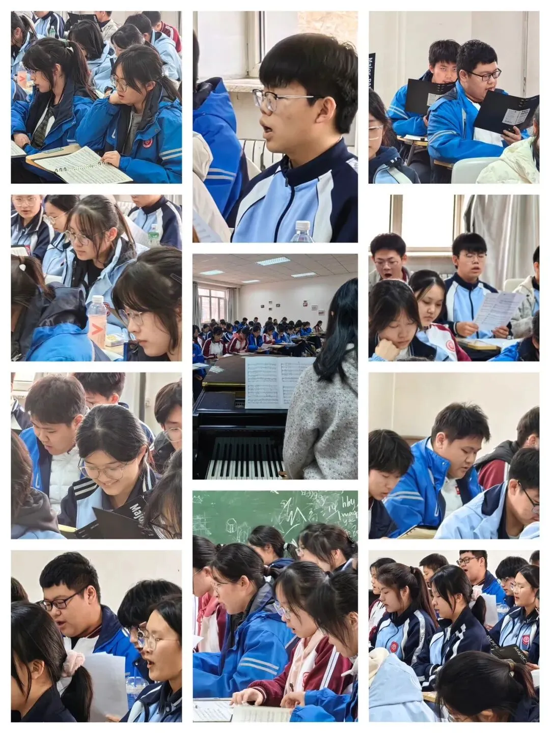 排练中,同学们都能认真记录演唱技巧,专注投入学习。在刘海微老师耐心指导下,同学们一个个专注的眼神、一遍遍认真的练习,徜徉在歌声的海洋里,记录本次排练的动人瞬间,成为同学们紧张的高中学习生活中的一缕春风,不仅是合唱学习的开始,更是哈三中校合唱团新学期、新起点、新征程的开始。